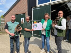 Bijgestaan door Mees en Dennis overhandigt Petra haar cheque van PostNL aan de Landerij in de persoon van Maaike. In de week van 7 mei maakt PostNL de 250 euro voor de deuren van de Kinderboerderij over! Bijna de gehele bijdrage van Overbetuwe Doet is op initiatief van Petra. Zij heeft via Facebook en haar blogs mensen gevraagd de cheque te doneren. En Petra heeft deze allemaal ingevoerd. Hulde, Petra!