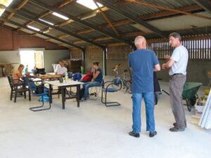 In 2015 starten we met het maken van de betonnen vloer i.p.v. de rasterplaten waar de mest doorheen liep. Daarop werden de eerste hekken geplaatst. De platen zijn hergebruikt in het pad voor de kas. Op de foto uit 2015 een nog vrijwel lege stal. Daarmee ontstond eerst een ‘halve’ kinderboerderij.