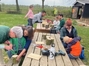 In het weekend van 12 april zijn kinderen enthousiast aan de slag gegaan met het bouwen van insectenhotels op de Landerij en wat een succes was het! Gewapend met boomstammetjes, plankjes, een boormachine en een flinke dosis creativiteit maakten ze de mooiste huisjes voor bijen en andere nuttige beestjes. Het was niet alleen leerzaam, maar ook ontzettend leuk om te zien hoe betrokken en trots iedereen was op zijn of haar eigen insectenhotel. Met hun zelfgemaakte hotels helpen de kinderen nu mee aan een betere leefomgeving voor insecten; een kleine stap met een grote impact!