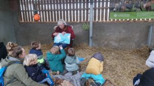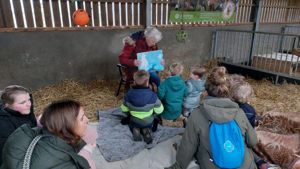 Op woensdag 8 januari kwamen Frans Nieuwenhuizen en Lucie Bloemberg voorlezen aan onze jonge bezoekers. Heerlijk zittend of liggend in het stro van de stal van Teun en Pleun. In het boek stonden prachtige platen van ijsberen, panda’s, olifanten, orang oetans en nog veel meer. Maar we hadden het ook over windmolens en zonnepanelen, want al deze lieve dieren verdienen wel een goede toekomst. Net als wij natuurlijk. Zeker zeven kinderen bleken er veel van te weten en zeer geïnteresseerd. De volgende voorleesmiddagen zijn woensdag 12 februari en 12 maart, steeds om 15 uur. Kijk ook maar eens op de website van deze grootouders.