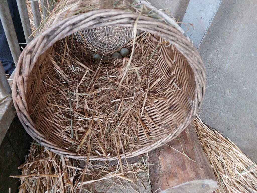 Gezellig naast de varkens kunnen onze Indische loopeenden buiten scharrelen. Niemand wordt boos bij een modderbad. Kom daar bij grote mensen maar eens om! Heerlijk vinden ze het om in die modder te wroeten. Maar ze kunnen ook lekker naar binnen; je vindt onze loopeenden links achteraan in de grote schuur. En kijk nou eens wat daar in die mand ligt? Prachtige lichtgroene eitjes. Nog even geduld en dan scharrelen er dus zes kleine loopeendjes rond. En die worden ook wel pijltjes genoemd. Kom je ze gauw eens bewonderen?
